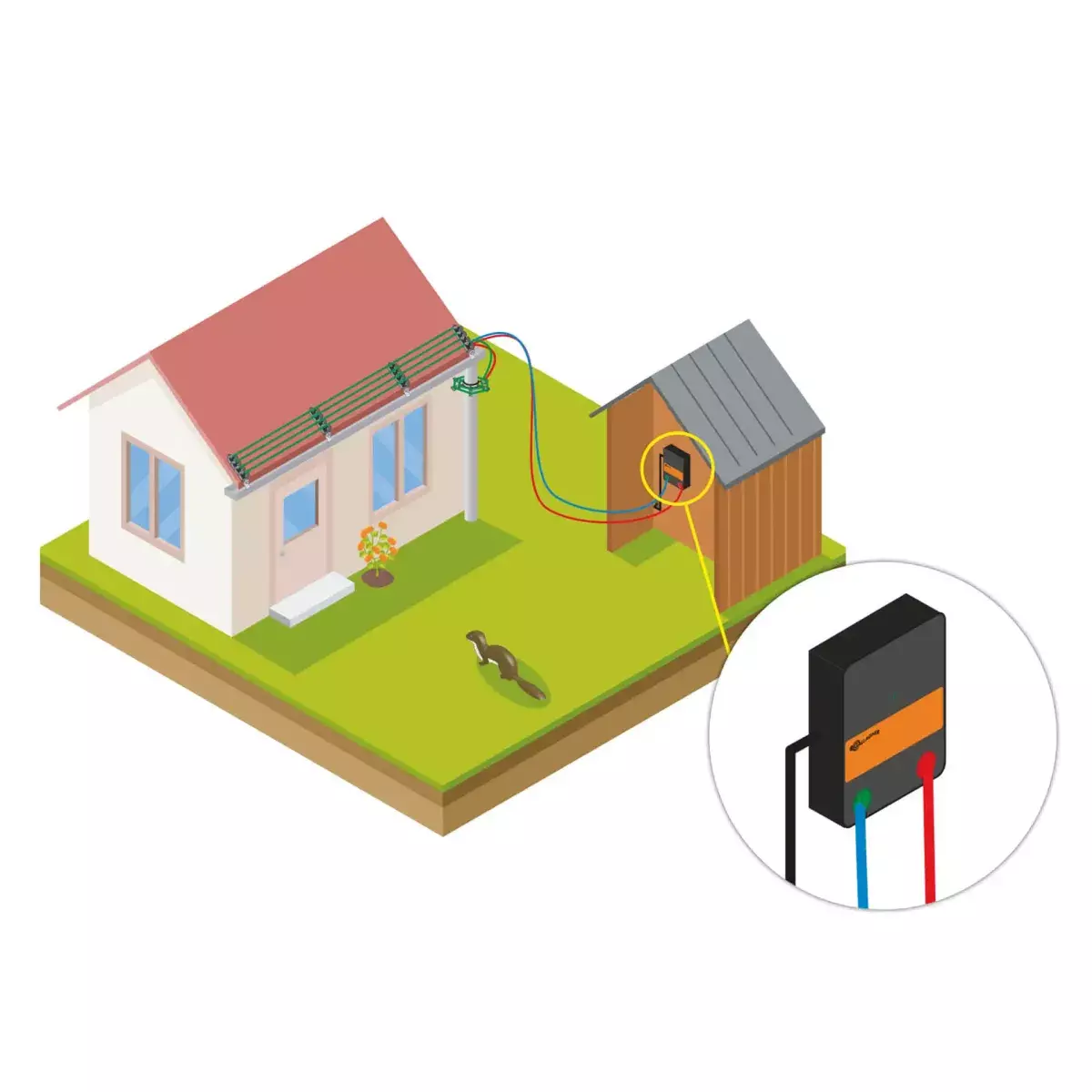 Basisset voor het weren van marters van uw terrein. Met een goede elektrische afrastering verkleint u de kans dat de marter schade aanricht aan uw woning of aan andere eigendommen. Deze set bevat isolatoren die om de regenpijp geïnstalleerd kunnen worden. Hierdoor kan de marter niet meer onder het dak van het huis komen. De M50 is een schrikdraadapparaat dat werkt op lichtnet. Deze set bestaat uit: M50 (schrikdraadapparaat), xx m getwijnd staaldraad, 2 regenpijpklemmen met isolatoren, 15 gootklemisolatoren, 10 draadverbinders, 1 aansluit set, 1 waarschuwingsbordje, 1 montageset en een handleiding.